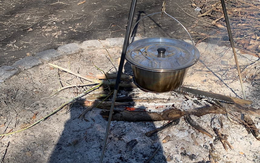 Wahlpflichtwoche der Erzieherinnen und Erzieher im FBZ Leipzig: Dreifuß am Lagerfeuer